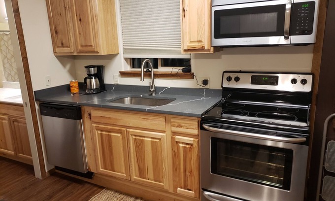 Come enjoy our very cozy guest house near downtown Bayfield. This 1 bedroom home offers off street parking in the privacy of a fenced back yard. This modern home has updated floors and new stone countertops. A full kitchen allows you to prepare your meals and a stackable washer and dryer offers self service laundry facilities. The Queen size master bed and Queen size pullout sofa sleep a combined 4 people comfortably. Fast Wifi.