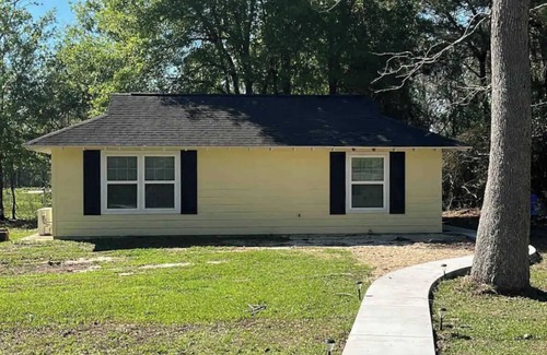 Located in Orange, Texas it is only 1/2 mile to I-10. We are on the border of Texas & LA and midway between lake Charles, LA and Beaumont, TX. We are in a very quiet, private neighborhood with one entry road. It is a safe place for a morning walk. Enjoy a very large circle driveway at the main house, and a beautiful walk way through the side gate to the Guest House in the back property. The Guest House is separate from the main house.