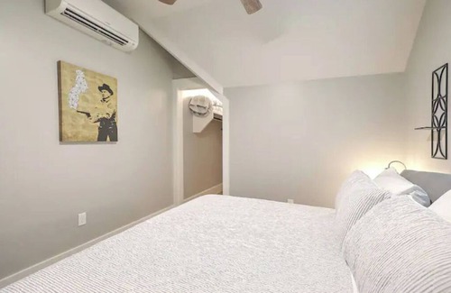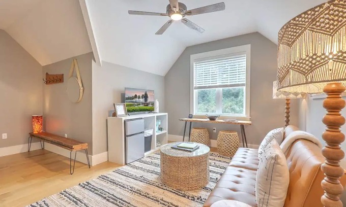 Your stay at this delightful guesthouse includes a fully equipped one-bedroom suite above the garage, complete with a separate private entrance and parking. You’ll find everything you need for a comfortable stay, including a cozy living area with a smart TV, mini-fridge, microwave, and coffee maker. The elegantly designed space features a live edge table and chic furnishings, ensuring that your experience is both relaxing and stylish. With amenities such as a private bathroom and a peaceful environment, it's easy to see why former guests rave about their time here.