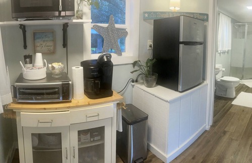 Our charming studio is conveniently located within a short distance of beaches, shopping, and food: Sunset Beach (12 miles), Ocean Isle Beach (8 miles), Holden Beach (9.7 miles), and Calabash (13 miles). This 500 sq. ft. newly remodeled private studio is designed to provide all the comforts of home. Equipped with a comfy queen bed, sofa, kitchenette (no stove), and clean open space. There is a shared driveway with the property owners who reside in the 75-year-old farmhouse they are remodeling on the same property.