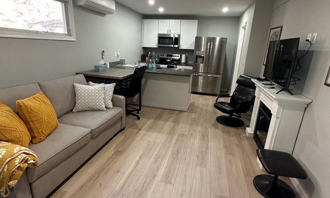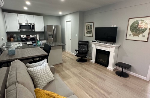 Your Hamptons Retreat! This charming 1-bedroom, 1-bath apartment sleeps 4 people. It's the perfect place to relax and unwind. Located in the heart of the Hamptons, you're just a short walk/drive from the beach, restaurants, and shops. The home has a cozy fireplace, a fully equipped kitchen, and a bathroom with washer and dryer.