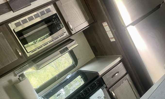 This luxury RV is tucked quietly along the Spokane River on a secondary lot with two private resident beaches for lake and river access. This unique property has everything you need for a relaxing couple's getaway, solo-travelling adventure, or small family stay! We are 10 minutes from downtown Coeur d'Alene, and a short drive to most activities this spectacular area has to offer.