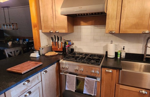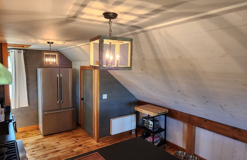 Looking for a cozy stay when you come to the Blue Hill Peninsula to see foliage? Peak season is projected for the first two weeks of October. Equipped with efficient radiators, your fully-heated getaway awaits in Brooksville at this quaint, post-and-beam barn. There are two bedrooms - one king and one queen bed with memory foam mattresses, bamboo sheets, comforters, wool blankets, and down pillows. The two bathrooms are each equipped with dual rain-head / handheld shower fixtures and a bidet. The downstairs bathroom also has dual sinks.