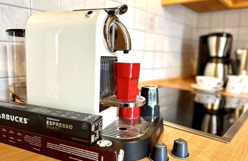 Coffee machines, kettles and toasters are available. Your car can be parked directly in front of the property or in a lockable garage.
