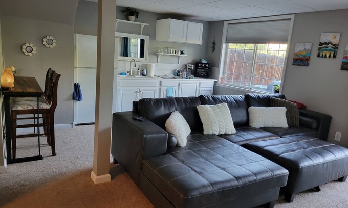 Here you will find the perfect hideaway in our newly designed basement apartment with a full sized bed and large sectional. This cute little place has its own entrance through the back with a relaxing backyard to enjoy the beautiful Colorado weather.