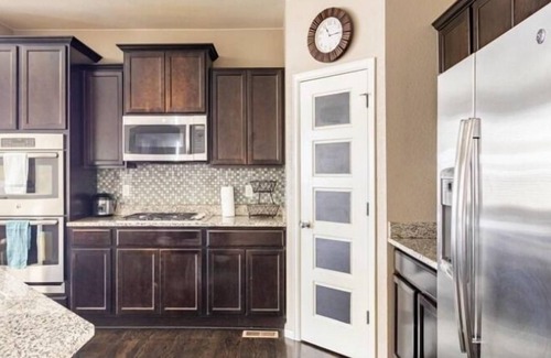 Ample indoor/outdoor living space awaits the whole family at this spacious 2,500-square-foot home in Thornton, your home is conveniently between Denver, Boulder, and DIA. Outside, enjoy a covered patio with a grill. Cookout, work out, or do both while the kids and dogs play in the large fenced yard. Multiple living areas provide plenty of entertainment space, while a sleek modern kitchen features upscale appliances.