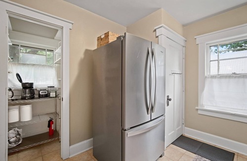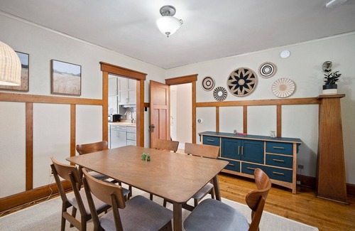 Off street parking is included and check-in is a breeze. This adorable house was built in the 1920s and offers three bedrooms- enough to comfortably sleep 6. 1 Gig internet speeds and designated office/work space. Well appointed kitchen and comfortable dining and living spaces make this ideal for weekend getaways or long stays. Wake up to fresh brew from local coffee shops with the provided coffee machine or French press. Put your feet up on the porch or be shaded by mature trees on the patio while bird-watching when the weather allows. In colder months, stay warm curled up with a book from our library and enjoy the views through original windows with gorgeous wavy glass. Unwind at the end of the day with your favorite shows on the television via Chromecast. Catch up on rest with comfortable mattresses, soft linens, and blackout curtains.