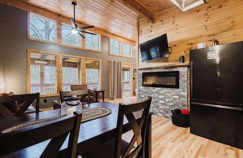 This retreat is equipped with modern amenities, including two 50-inch smart TVs and high-speed internet access, ensuring you stay connected during your stay. Experience warmth and ambiance with electric fireplaces in both the living area and bedroom. And for the ultimate relaxation, unwind in the brand-new hot tub. No steep or winding roads to navigate means you can focus on enjoying your perfect getaway.