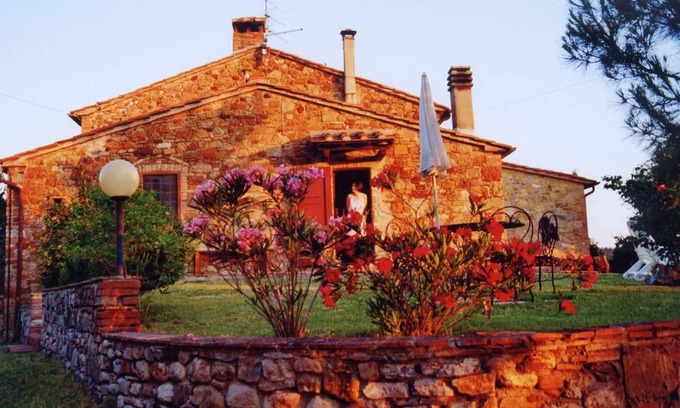 Colloritto is an old farmhouse in a hill top position in the wonderful countryside west of Siena. It lies 12 Km far from Casole d’Elsa and 9 from Radicondoli, both typical medieval villages still retaining their charm and original character. Colloritto is a perfect jump off point to explore the enchanting Tuscany, including the Maremma seashore. City of art such as Siena, Florence, San Gimignano, Volterra, Monteriggioni, Massa Marittima are easily accessible on good roads. Colloritto was built over an Etruscan site. The place was inhabited since then. The nature lovers will enjoy walks on the nearby paths (there are no barriers or fences anywhere) and also the river reserves and the wildlife sanctuaries of the area.. Culinary specialities from land and sea await your discovery. The famous wine region “Chianti” is only 25 km away. Each of the two apartments has its own patio and garden, from which our guests can enjoy the panoramic views and peace.