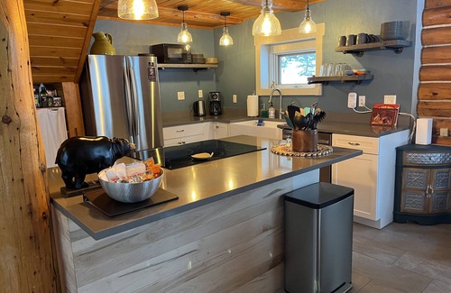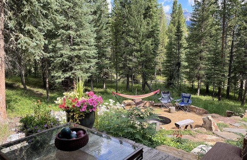Secluded cabin in the woods with private hot tub and fire pit, surrounded by groomed cross-country and snowshoe trails, and just minutes to Big Sky shops and restaurants. This recently renovated, charmingly quirky home sleeps 8, with four luxuriously outfitted bedrooms and 2 1/2 unique baths. Treat your family and friends to a claw foot soaking tub and fully stocked kitchen, fireside reading, books and games, snowshoes, a private hot tub, freestanding fire pit, and a boot/glove dryer to refresh your gear. Hike or cross country ski from your own front door, 10 min to resort skiing.