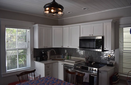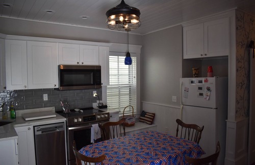 This is a 1 bedroom apartment, completely renovated keeping the historic features of the house with modern amenities. Decorated with an eclectic mix of antique furniture and light fixtures. The house is located on the parade route of the oldest 4th of July celebration in America, 2 blocks from the downtown area of Bristol and close to many other area attractions like Newport(30 mins south) and Providence(30 mins west) and Boston(60 mins. north). The house is equipped with a fully functioning kitchen with a stove, oven, microwave, dishwasher and wet bar area for your cocktails. Relax on the front porch and people watch or take in the morning & afternoon sun on our new side porch. At the end of the day, relax in our soaking tub or walk-in shower with rain head then watch your favorite show on our smart TV.