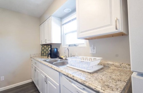 2 bed 1.5 bath home with living room and dining plus stocked full kitchen.