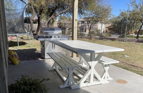 Large family home in Buckeye AZ in a very safe and peaceful neighborhood. Very close to all spring training fields in the west valley! Just 5 minutes from the I-10 freeway surrounded by a large shopping center and restaurants and many other accommodations. You’ll enjoy all the beautiful Mountain Views and hiking trails at Skyline Regional Park just 5 minutes from the home. Large backyard with patio and BBQ, great for kids and families. The home sleeps 7 but can easily accommodate more guests.