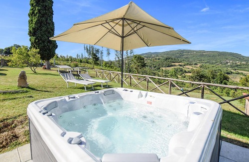 In an idyllic location, this historic country house invites you to a relaxing stay. In the authentically furnished rooms with lots of wood and rustic elements you will immediately feel at home. Enjoy the magnificent view over the picturesque Tuscan landscape, take your meals together at the dining table in a rustic ambience and create a particularly cozy atmosphere in the evening with a fire in the fireplace.