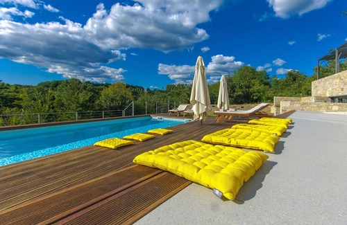 In the charming town of Svetinčenat, on the outskirts of the Istrian coast, lies the modern Villa Vala, offering a beautiful view of the greenery that surrounds it. Svetvinčenat will delight you with its fantastic tourist offer in the form of rich cultural material and immaterial heritage, various events held at numerous attractive historical locations and delicious gastronomic delicacies.