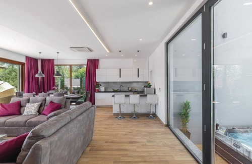 Spend your vacation in this beautiful villa with pool, which will delight you with its decoration and attention to detail, as well as its fascinating architecture. The interiors are very well furnished, as well as the terrace where you can enjoy grilled specialties or a glass of premium local wine. In the basement of the house there is a sauna to relax in. The vacation home is located in a small Istrian town near Porec, where you can find peace and quiet. You can easily reach the first beaches by car. A visit to the nearby adventure park Istralandia is recommended.