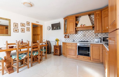 This vacation home is the ideal place for holidaymakers looking for seclusion and tranquillity and who want to enjoy the idyllic life in Italy. The kitchen of your vacation home invites you to cook together with a combination of traditional elements and modern functionality. Spend time with the family in the adjoining living room, whether playing cards or simply relaxing, while the mountainous landscapes can be seen through the windows. The full splendor of the surrounding natural areas can be enjoyed outside on the spacious terrace. You can also fire up the barbecue here or enjoy breakfast outside in the morning.
