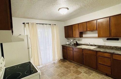 It features a private fenced in back yard with a large deck to relax on. Parking is available on the street, driveway, & garage. If you have large trailers that need to be stored for your stay, please let me know as our primary residence has a lot of space.