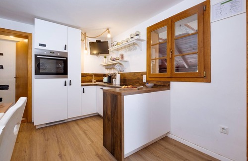 This spacious holiday home welcomes you with traditional charm and promises the whole family relaxation and enjoyment of delightful extras. Serve regional specialities in the charming dining area, browse through a good book, treat yourself to some soothing moments in the sauna after a long day, organise fun game nights on the cosy sofa or stream your favourite series.