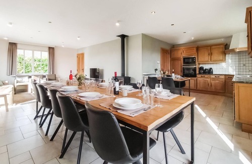 This vacation home is located in Westhoek, a beautiful region in West Flanders with exciting cities and charming villages. Since the vacation home is located on the owner's large agricultural property, the house with all facilities offers plenty of space for the whole family and tranquility. Warm colors and cozy wooden furniture contribute to the welcoming atmosphere. Cook together in the large kitchen, later you can challenge each other at table soccer. Enjoy a glass of wine on the large terrace while your children jump on the trampoline or ride the available go-karts around the property.