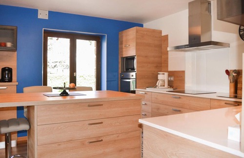 Look forward to this inviting and authentic vacation home, which creates you a great vacation accommodation with an interplay on rustic wooden furniture and modern furnishings. Either enjoy restful nights in the appealing bedrooms or come together for entertaining hours in the living room or kitchen. Step out onto the terrace with your morning coffee cup and feel the first rays of sunshine. Following breakfast, you can lounge by the pool, take a dip and simply unwind.