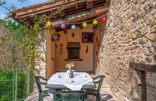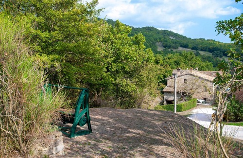 About 1.5 km above Mercatello sul Metauro, this rustic vacation home is located in a romantic hillside position, on the edge of a small borgo.