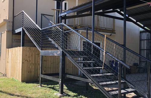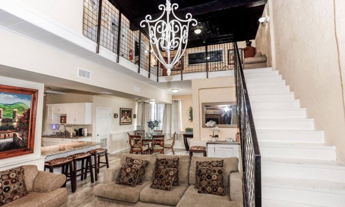 Cozy home comfortably fits 8 people. It is in a commercial area. It is sitting in a 3 floor building. Cozy Home is located in the 2nd and 3rd floor. There is stairs for entrance and inside home. It is very spacious. Includes washer and dryer. It is right off the expwy, easy access to all locations. Has a full kitchen.