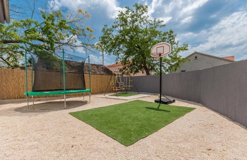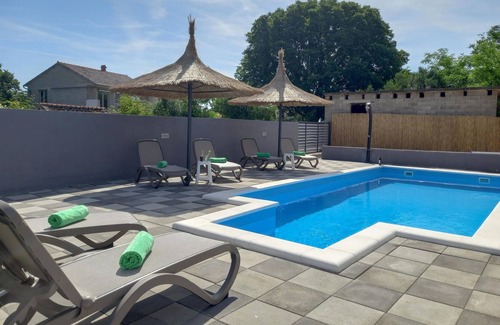 You will especially like this cozy and modern furnished vacation home. The tasteful furniture combined with bright stylish decorations creates a wonderful atmosphere to feel good. Here you can make yourself comfortable with your family for a vacation and enjoy your time in Croatia, while you do not have to sacrifice anything to have a relaxing vacation. The living room opens onto a spacious terrace with outdoor pool, sun loungers and barbecue where you can enjoy your morning coffee and meals together. Also for the little guests there is a private garden where you can play carefree.