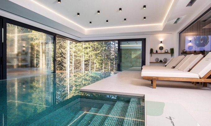 The beautiful pool, where you can relax with a view of the forest, can be used either open or closed. Breathe in the fresh forest air on the terrace after a cosy swim and soak up the peaceful atmosphere.