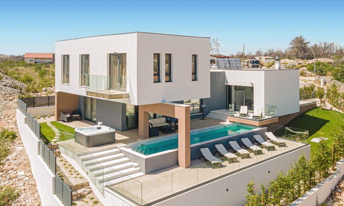 Experience a luxurious holiday home in Zaton, where modern elegance meets pure relaxation. This exclusive villa offers everything you need for an unforgettable holiday. The spacious outdoor area with private pool and sun loungers invites you to relax. Start your day with a refreshing dip in the pool and relax in the hot tub while enjoying the magnificent views of the surrounding landscape.