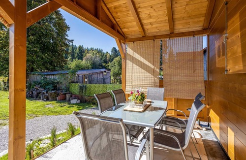 Come and enjoy winter and summer in this beautiful property. Lots of space and charm characterize this cozy house and invites you to feel at home here and enjoy the good facilities. Wellness is very important here and is organized in a separate area. Relax in the infrared sauna, which also has color therapy and lie down in the large indoor whirlpool or relax on the loungers. Enjoy your time outdoors as well, whether on the balcony or the terrace and look into the greenery.
