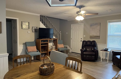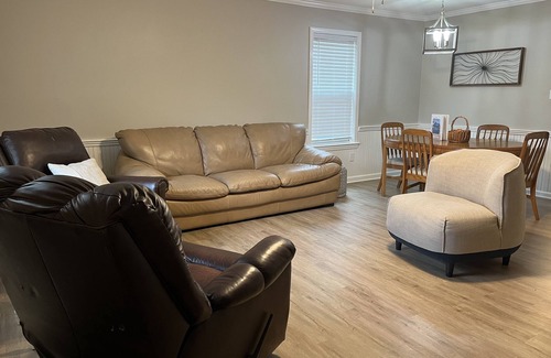 This four-bedroom, two-bath home is tucked away from the hustle and bustle while being just a quick drive away from the city. This newly renovated 2 story, 4 bedroom, 2 bathroom house is only 14 minutes away from Snowden Grove Park and Amphitheater as well as the new Silo Square. Only 17 minutes from Tanger Outlets and 30 minutes or less to Beale street, the FedEx Forum, Bass Pro at the Pyramid, Graceland, Sun Studios, and many more Memphis attractions. This house has 2 bedrooms and 1 bathroom down as well as the same on the upper level. This house is a great stay for all your needs in the greater Memphis-Metro.