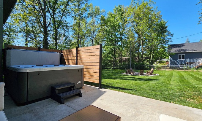 Outside/Exterior: We’ve just taken relaxation to the next level with a brand-new outdoor setup designed for unforgettable moments. Step into your own private escape featuring a luxury hot tub equipped with neck blasters, foot massagers, LED lighting, and sleek touch-screen controls—the ultimate spa experience under the stars. Note this is a shared space, but rest assured, we give our guests full access to the space while you are here!