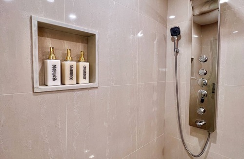 While you're here, you can enjoy all the comforts of home and more, including a rainfall showerhead and a refrigerator, as well as an oven and a stovetop. Other amenities include Egyptian cotton sheets, premium bedding, laundry facilities, and a freezer.