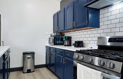 Enjoy a stylish experience at this centrally-located place. Only 15 minutes from downtown this fully restored home has an updated swimming pool with tanning ledge, a covered outdoor patio with dining table and outdoor kitchen with grill.