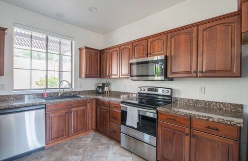 Our newly remodeled 4 Bedroom 2.5 Bath with fun outdoor amenities to include gas fire pit, gas barbecue, putting green and walking distance to incredible hiking trails. Only half mile to restaurants and groceries. Shopping, restaurants and movies at Norterra only 5 minutes away. Newly furnished luxury property with heated pool and hot tub a quick walk away. Private access to basketball, volleyball and tennis courts! After each stay, the house is professionally cleaned.