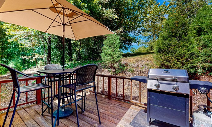 Enjoy the fresh mountain air on the patio, complete with a patio table with an umbrella and a gas grill for al fresco dining. Whether you're relaxing with a book, playing a board game from the selection provided or challenging your family to a game of shuffleboard or tabletop bowling, there's something for everyone to enjoy.