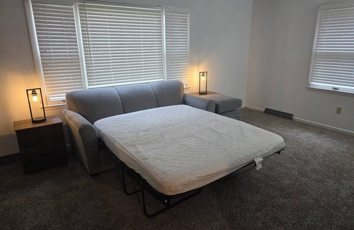 With a queen size bed in the bedroom, there is also extra sleeping space in the living room with a comfortable sofa bed if your traveling with coworkers or kiddos.