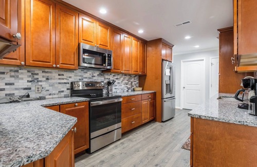 Kitchen – A modern, fully stocked kitchen with stainless steel appliances, granite countertops, and plenty of storage.