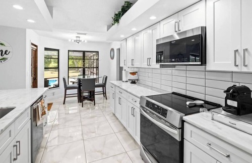 Cozy home with heated pool in Brooksville, FL is located in Spring Hill. Cozy home with heated pool in Brooksville, FL provides accommodation, featuring Air Conditioner, Pet Friendly, Parking, among other amenities. This House features Air Conditioner, Pet Friendly, Parking, to make your stay a comfortable one.