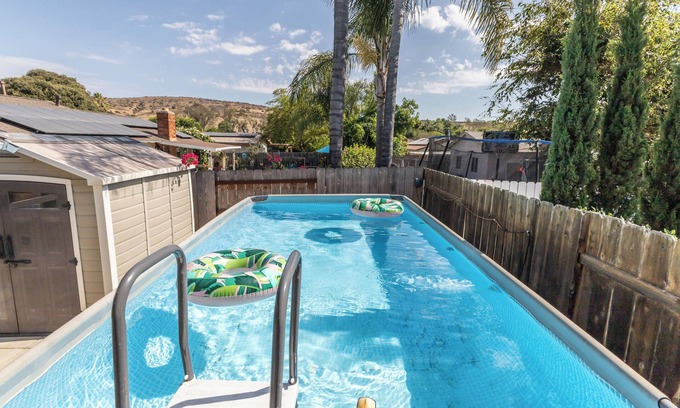 Return from your San Diego adventures to a peaceful retreat under the avocado tree, unwind in the spa, or splash in the 9'X18"X52" above-ground pool. Gather around the gas fire circle for marshmallows or S'mores in the backyard.
