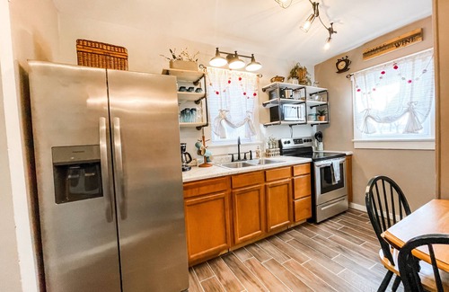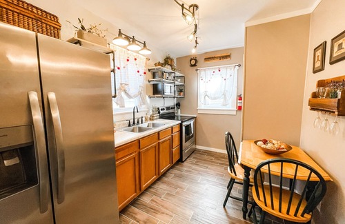 Enjoy this completely updated 2 bedroom one bath home while you visit our sweet town of Nashville and all it has to offer. Kitchen is fully stocked with all the items you would need for a short stay or making larger meals. The two bedrooms have a higher grade queen size memory foam mattress with luxurious sheets and duvet covers. The rooms offer lots of storage options for you to get settled in. The best feature of the home is the new fireplace. Perfect for the cold nights ahead!