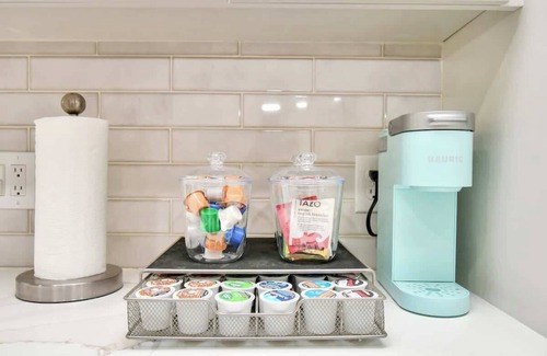 - Coffee Maker (Coffee, Tea, Sugar included)