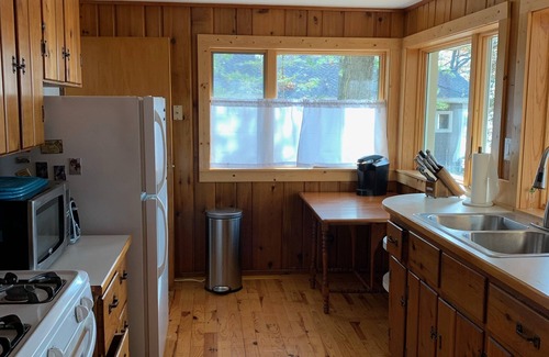 Firewood is provided. There are steps down to the lake, with a deck halfway down. Please note that the steps to the lake are not maintained in the winter.