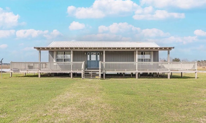 Relax with your friends & family at this peaceful place in Winnie, Texas; an area known for phenomenal water-fowl hunting & in close proximity to the Anahuac, JD Murphree & McFaddin Wildlife unit & the Bolivar Peninsula noted for salt-water fishing. Nestled in an exotic ranch, the cabin is overlooking an expansive pond. Watch sunrises & sunsets in the wrap around porch & revel in the beauty of exotic animals such as Pere Davids, Fallow, Sika, Axis, Blackbuck, Warthog, Wildebeests, Lechwe & more!