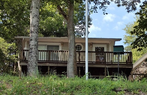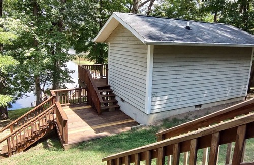 This is a quiet secluded Hyco Lake cottage located on the south end of the lake without a lot of boat traffic. It's a one bedroom, one bath cottage that opens to a front deck. We block off the main house if this cottage is rented so you will have the property to yourself. You may also use the screened-in porch and lower concrete patio of the main house during your stay. Due to the water being shallower on this end of the lake (typically 3ft at end of dock) only fishing boats are allowed at the dock. We have our boats on the lifts but there are cleats and bumpers if you need to tie up your fishing boat. There are two kayaks with paddles and life jackets available for your use. We have fold-out chairs also at the dock for your use.