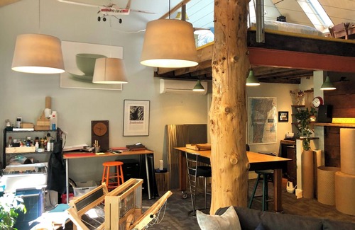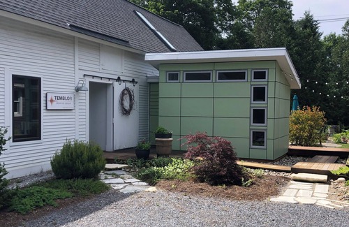 The Barn, situated behind our house, is located just a few minutes walk to the center of Manchester. It is a working studio setting with general living area on the main floor and a bedroom above in a loft. Hot tub, outdoor shower and outdoor space is accessible. Very clean, very fun space with ample room, comfortable bedding. Perfect for two. (Note: Bedroom Loft is only accessible via a spiral staircase).