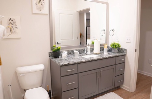 This one-bedroom, one-bath fully furnished unit, exudes modern elegance. The stylish kitchen features sleek granite surfaces, perfect for meal preparation and dining. The unit includes a comfortable bedroom, a well-appointed bathroom, and a spacious living area. Whether you're here for a short-term stay or an extended visit, you'll enjoy the convenience of this fully furnished space with upscale touches, making your stay in Concord, NC, both comfortable and aesthetically pleasing.