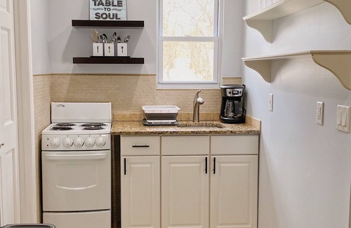 Cozy one bedroom king suite and sofa with pull out bed. Full kitchen and dining area. Bathroom with standing shower. Free parking on premise for up to 2 cars. Quiet, family friendly neighborhood.