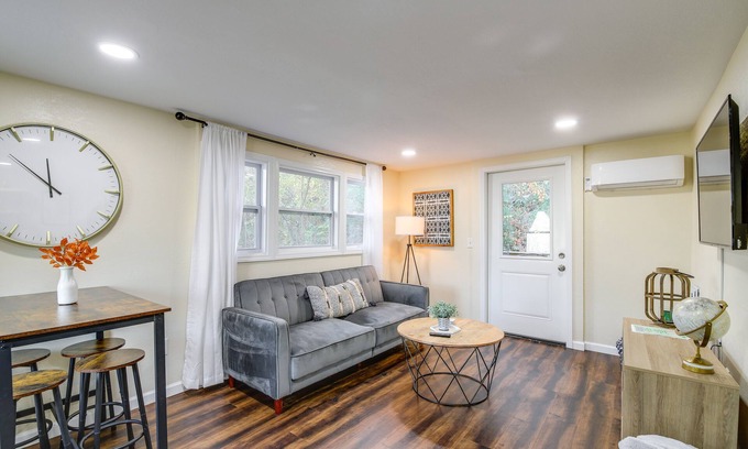 Your romantic getaway or solo adventure awaits at this Knoxville vacation rental a short drive from downtown. Featuring a rustic backdrop and a cozy interior, this 1-bed, 1-bath cottage sets the stage for seamless R&R. Cook for 2 in the kitchen, unwind in front of the Smart TV, and relax on the private deck. As night falls, roast s’mores by the fire pit under the starry sky. Don’t forget to explore Zoo Knoxville and Market Square, or take a day trip to the Great Smoky Mountains National Park!